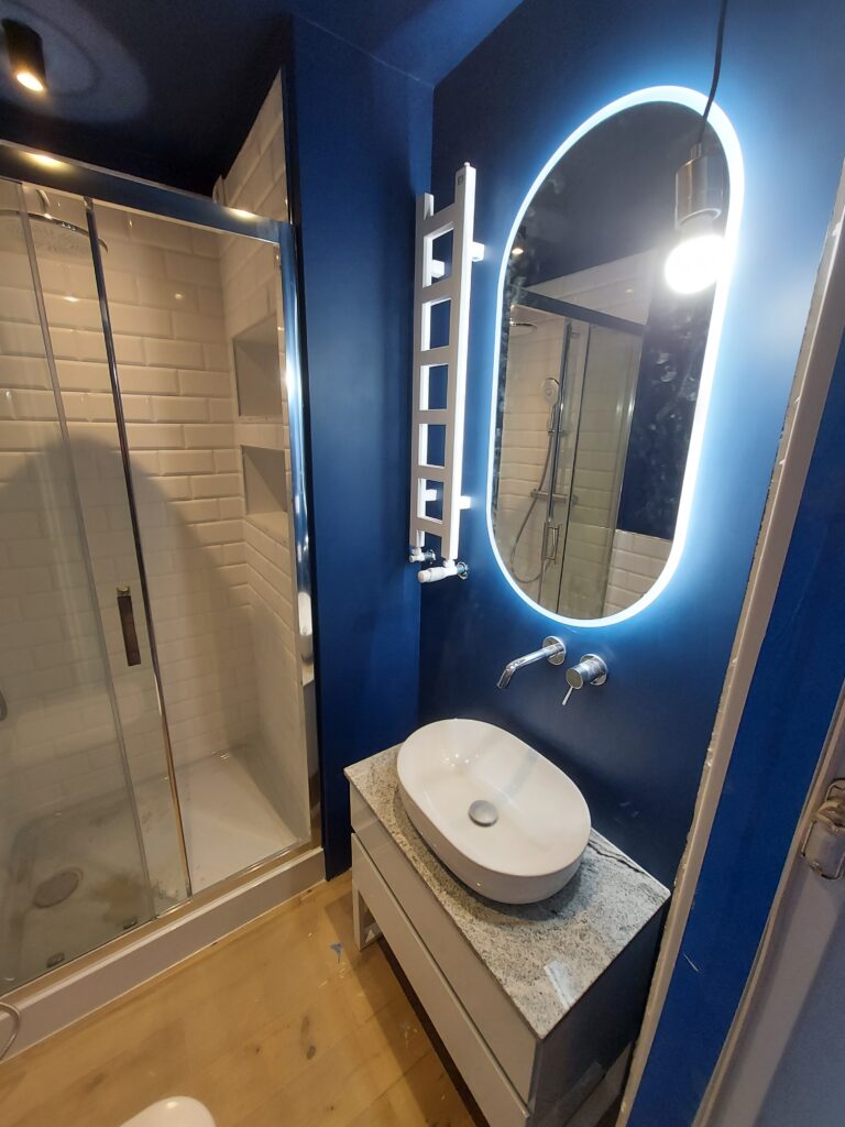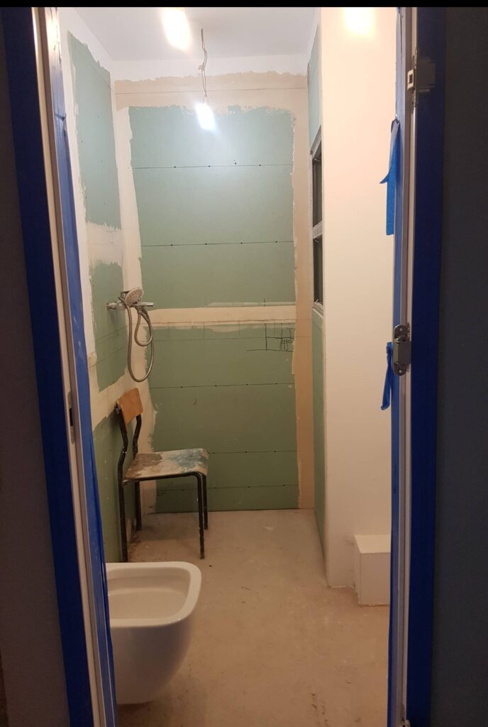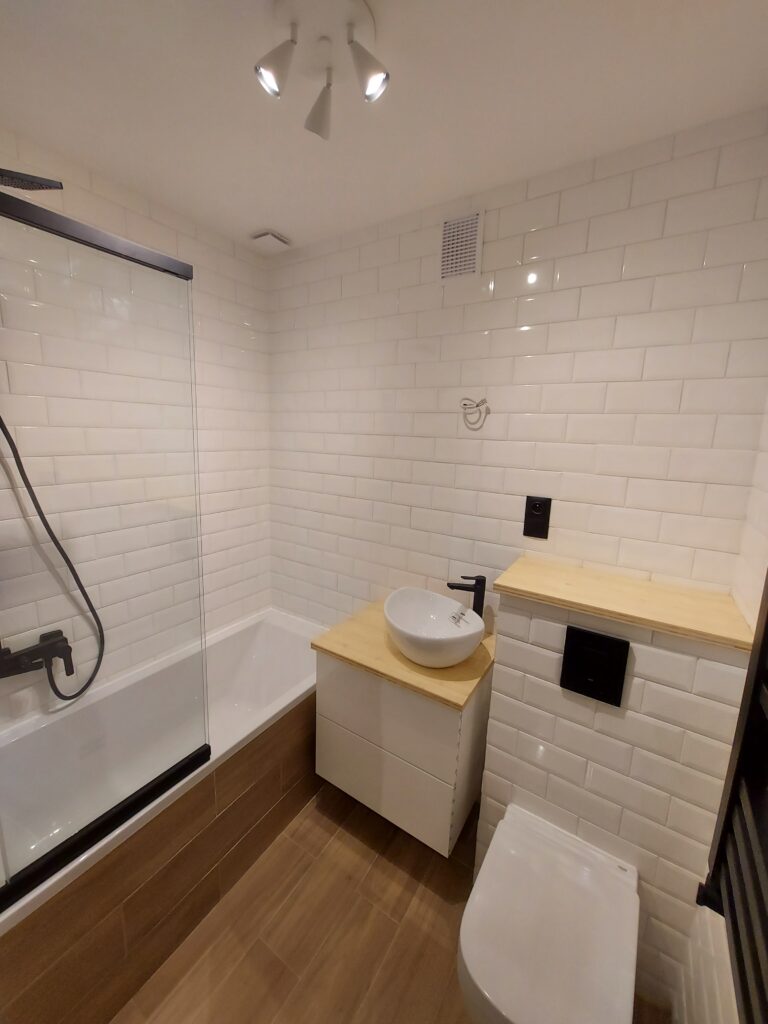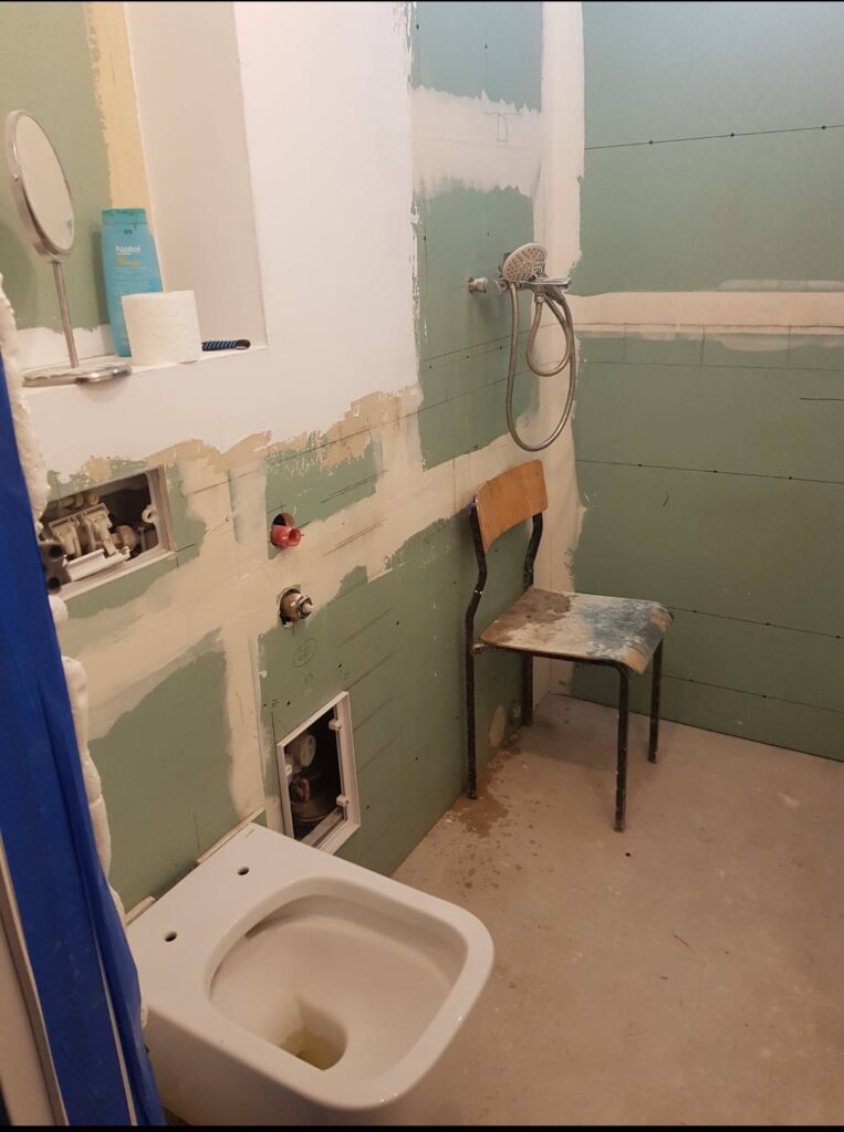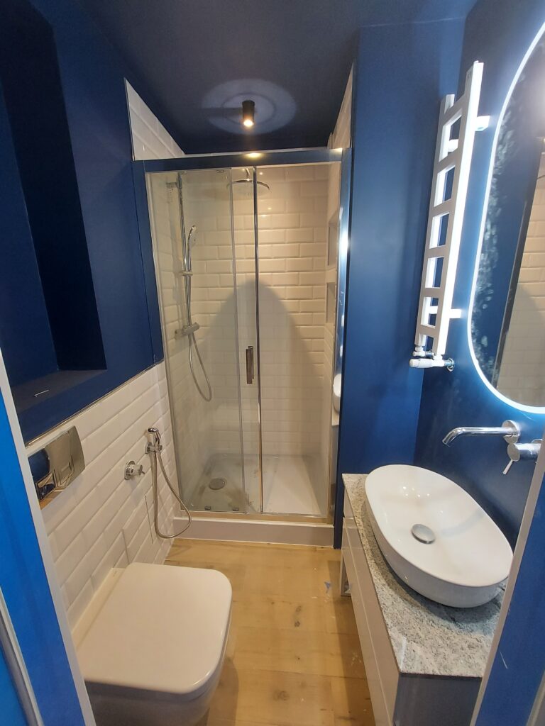 Metamorfoza łazienki częściowo już przygotowanej przez innego wykonawcę który musiał zmykać z budowy. Oceńcie sami jak się prezentuje biel z niebieskim.